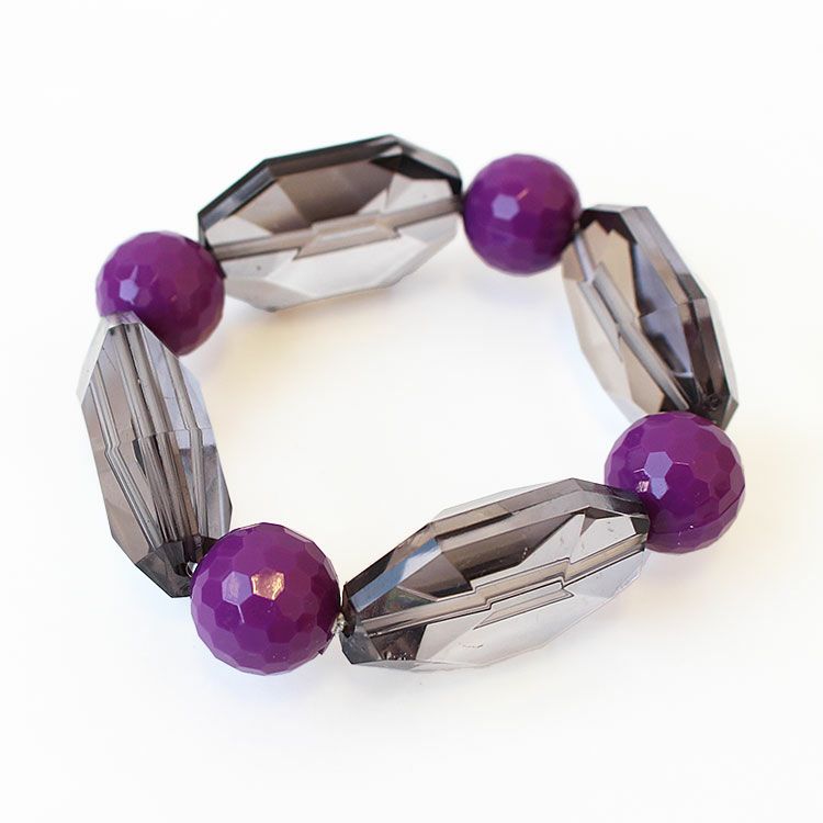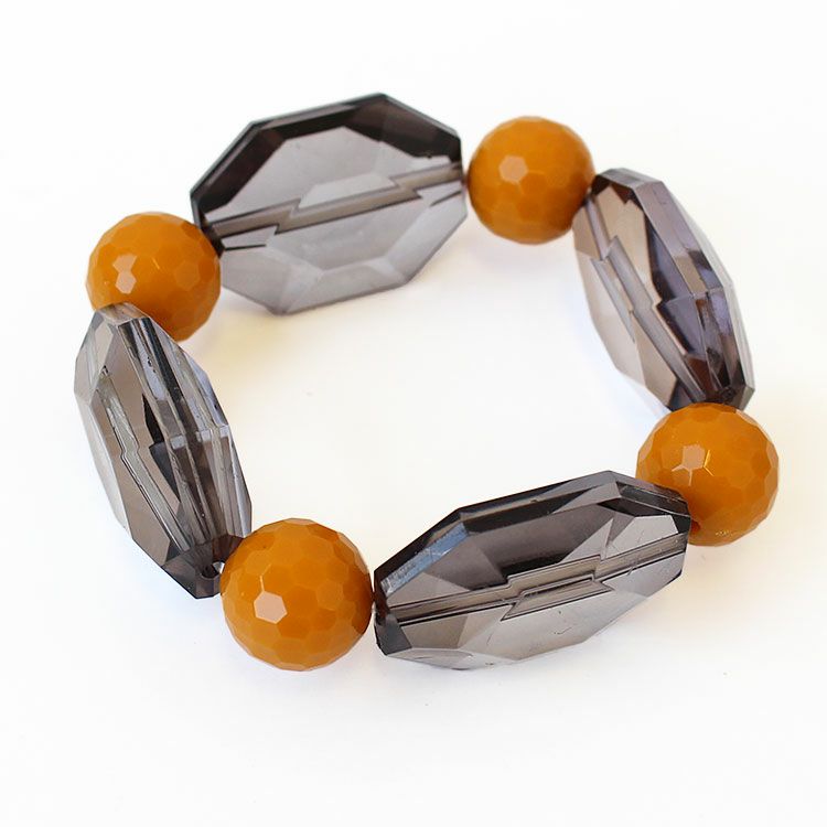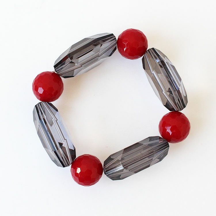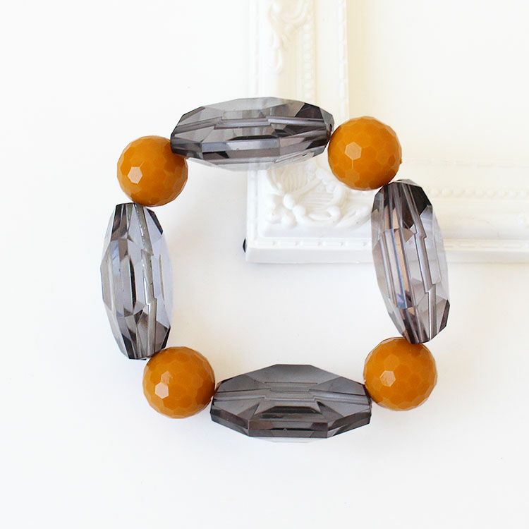 カッティングが美しい大ぶりのアクリルビーズを組み合わせたブレスレット。着けた瞬間しっくりと馴染みオシャレ見えするデザインが魅力です。ゴムタイプのため着脱がスムーズです。