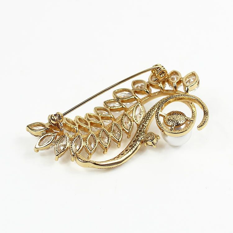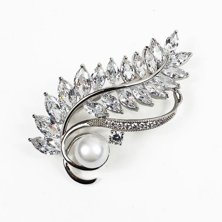 キュービックジルコニア×パールフェザーブローチ