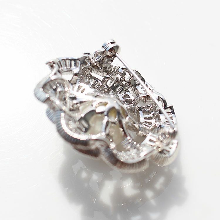 キュービックジルコニア×パールデザインブローチ/5181073
