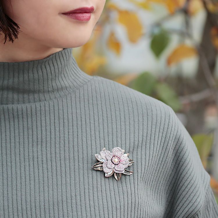 メッシュ素材のフラワーが凛とした表情を作り上げます。