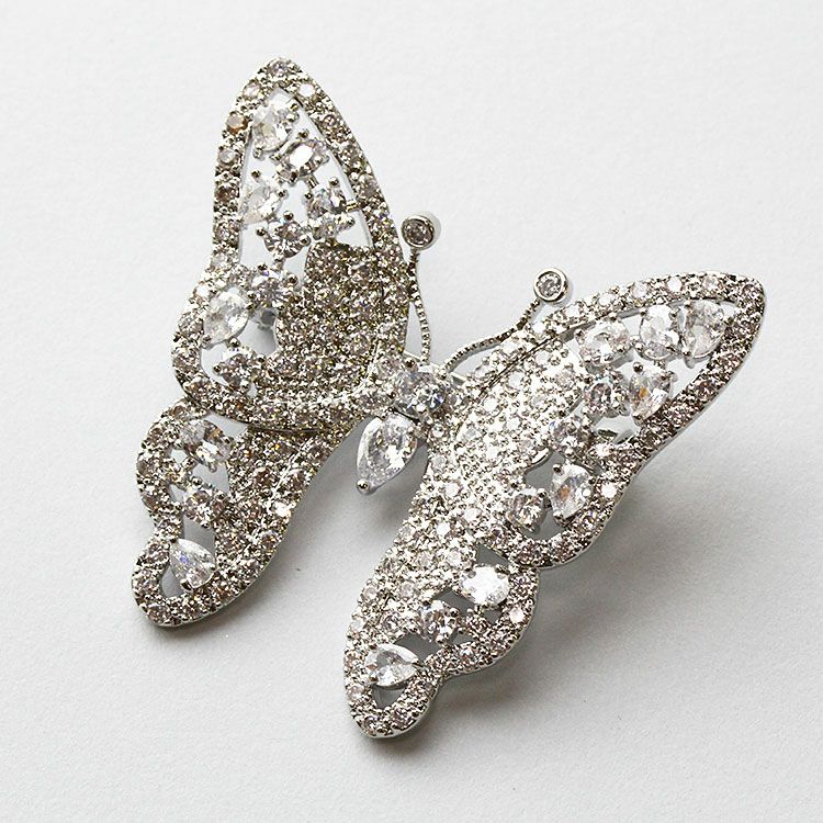 大小のキュービックジルコニアで蝶を模ったバタフライブローチ。