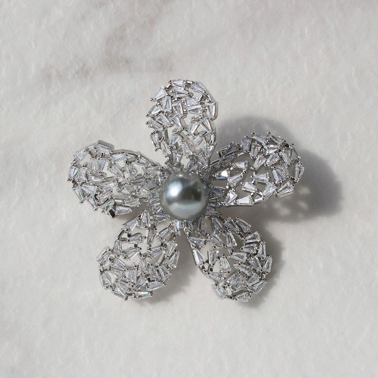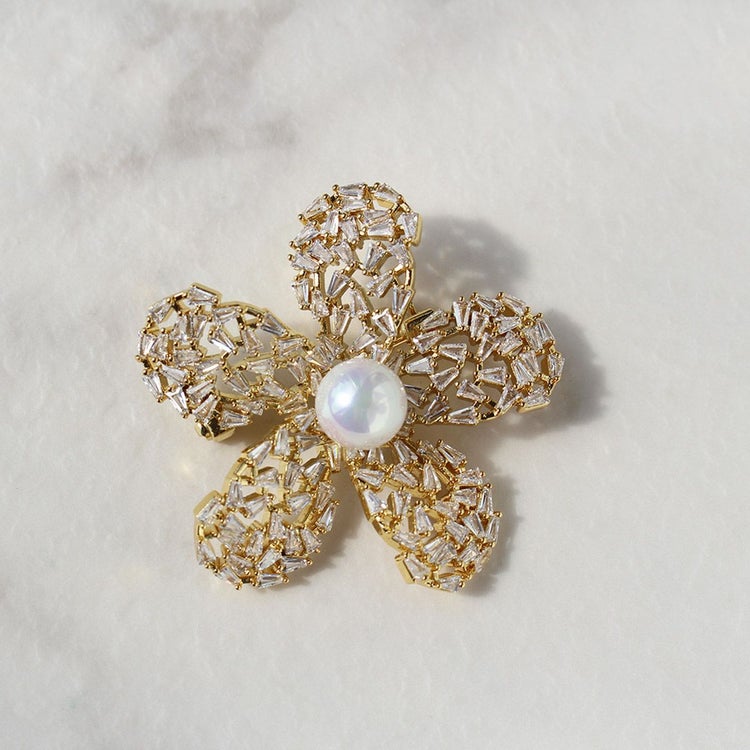 フラワーモチーフキュービックジルコニア×パールブローチ