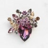 大粒のドロップ型クリスタルガラスに花を生けたような、華やかなブローチ。パープルやグレー、ライトブラウンと様々な色を組み合わせた落ち着きのあるマルチカラーなので、合わせる服や小物の色を選びやすいのも嬉しいポイントです。もちろんシンプルな服のアクセントにも。