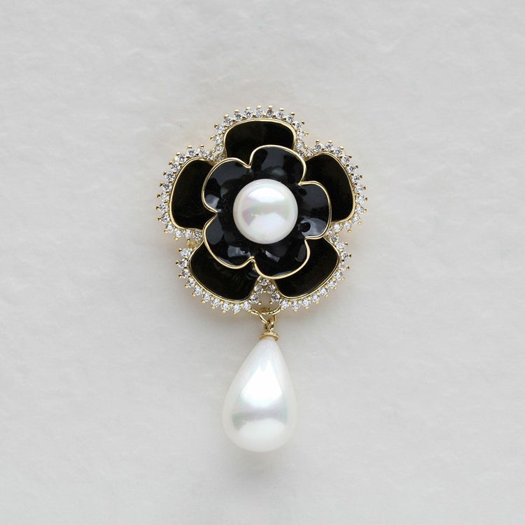 キュービックジルコニアで縁取られたフラワーモチーフのフェミニンなブローチ。揺れるパールがエレガントなクラス感を醸し出し、普段着からおでかけ、セレモニーまで幅広いシーンにマッチします。