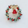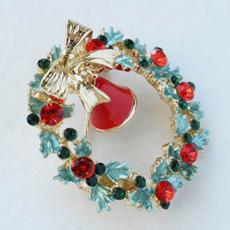 クリスマスリースを模ったホリデームード溢れるブローチ。落ち着いたグリーンに鮮やかなレッドのストーンが輝き、リボンや揺れる鈴がアクセントになったデザイン。洋服や帽子、マフラーなどに付けて、クリスマスシーズンをぜひ楽しんで。