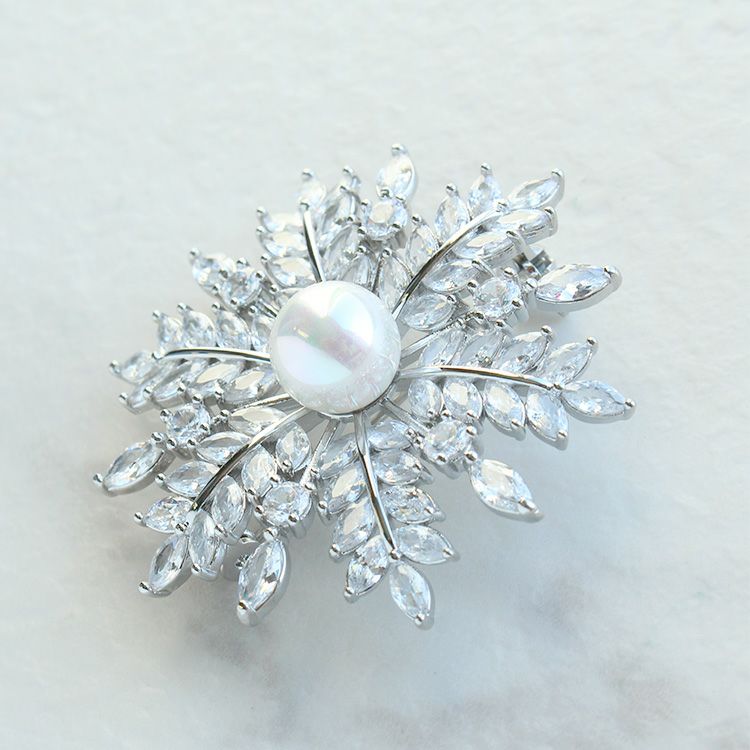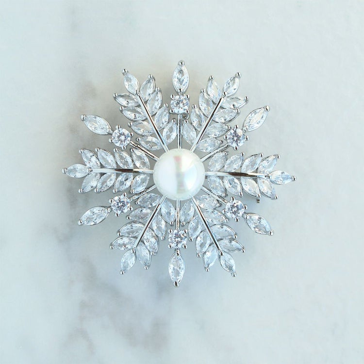 スノーフレークモチーフキュービックジルコニアブローチ