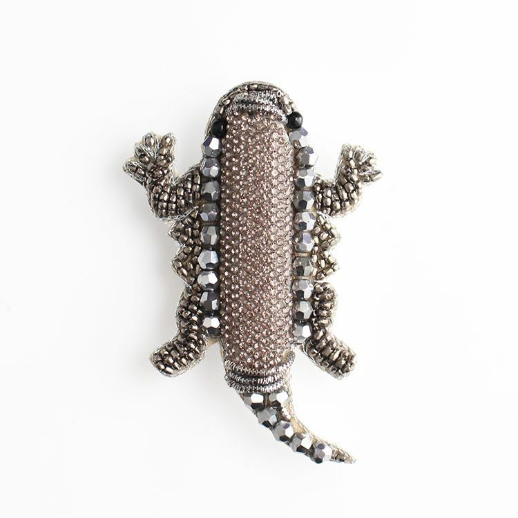 繊細なビーズ刺繍が施されたリザードビーズブローチ。軽量のため、お洋服はもちろん、スカーフ留めやニット帽、マフラー、バッグなど、どんなアイテムでもご使用いただきやすいのが特徴です。