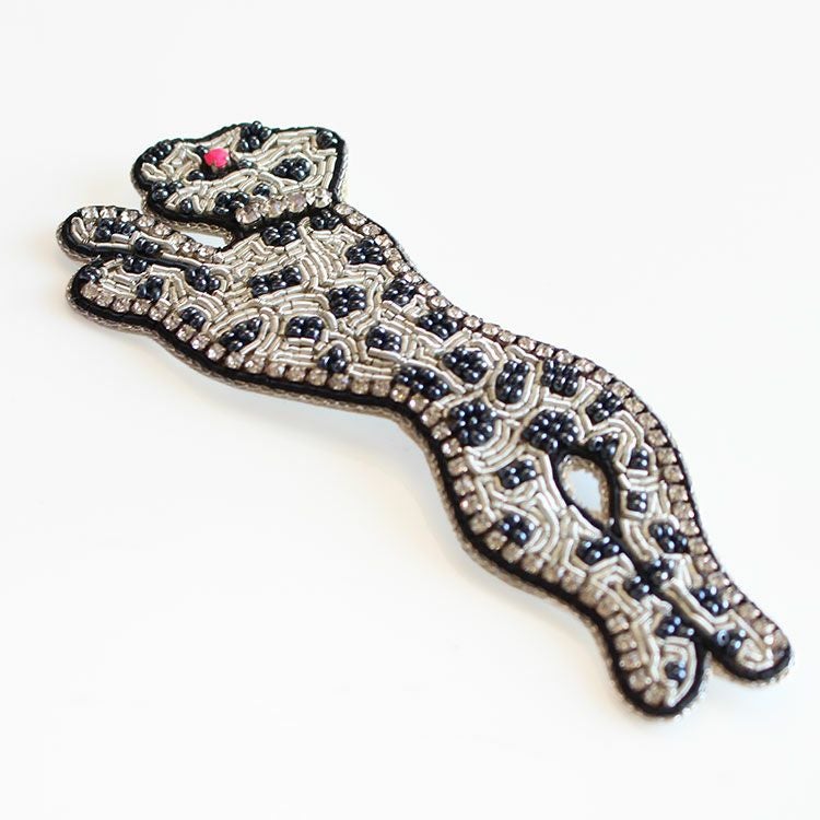 繊細なビーズ刺繍が施されたレオパードビーズブローチ。軽量のため、お洋服はもちろん、スカーフ留めやニット帽、マフラー、バッグなど、どんなアイテムでもご使用いただきやすいのが特徴です。