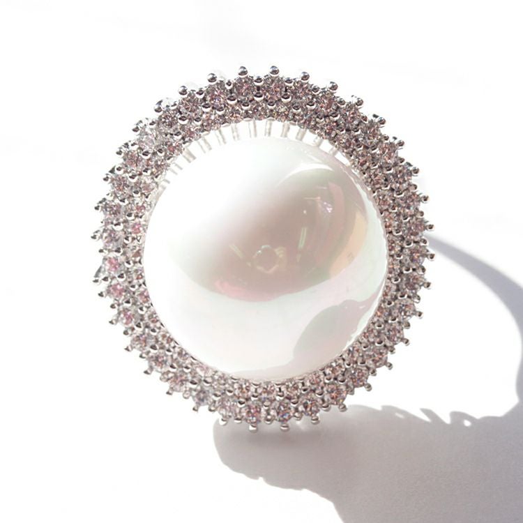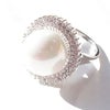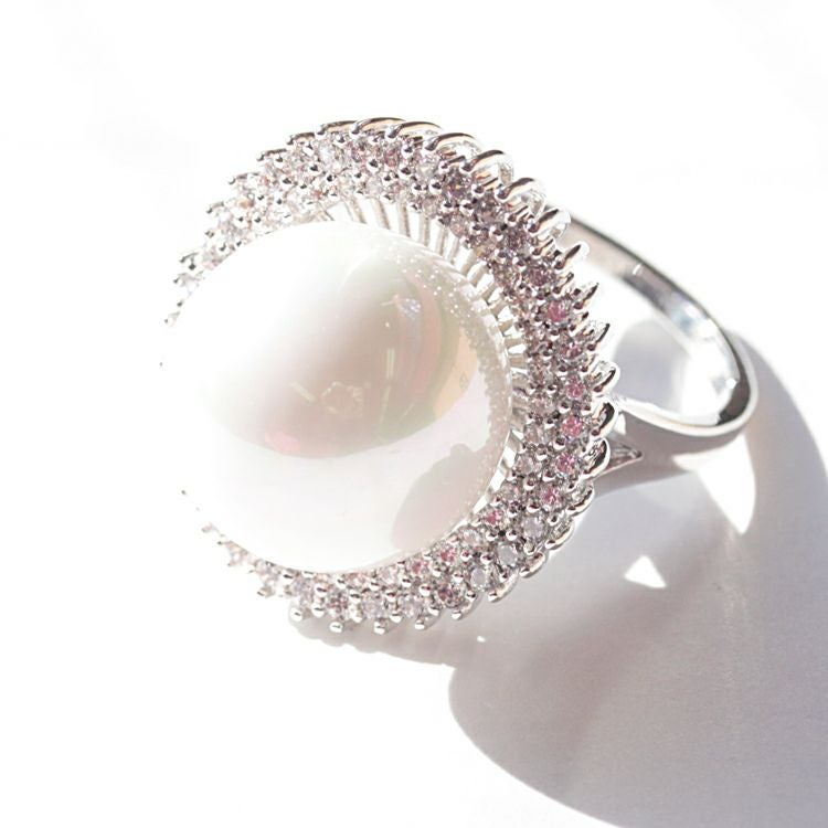 キュービックジルコニアがあしらわれたパールデザインリング。大粒のパールがエレガントな印象をプラスし、大人の装いにしっくりとなじみます。