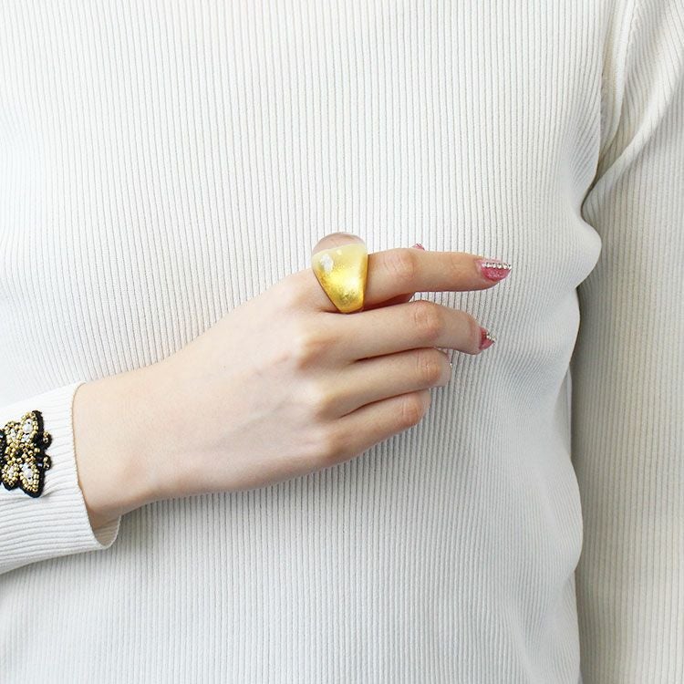 金箔24Kを透明のレジンで閉じ込めた、上品で高級感のあるPRECIOUSシリーズ。何層にも重ねられ、手間をかけて作られるパーツは、アクリル製ながらもまるでガラスのような透明感に。