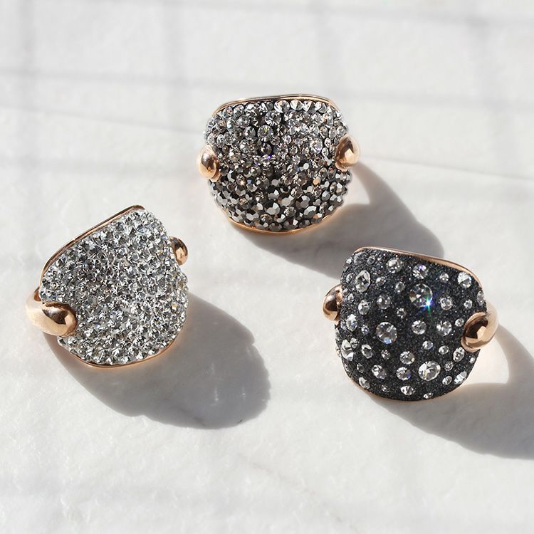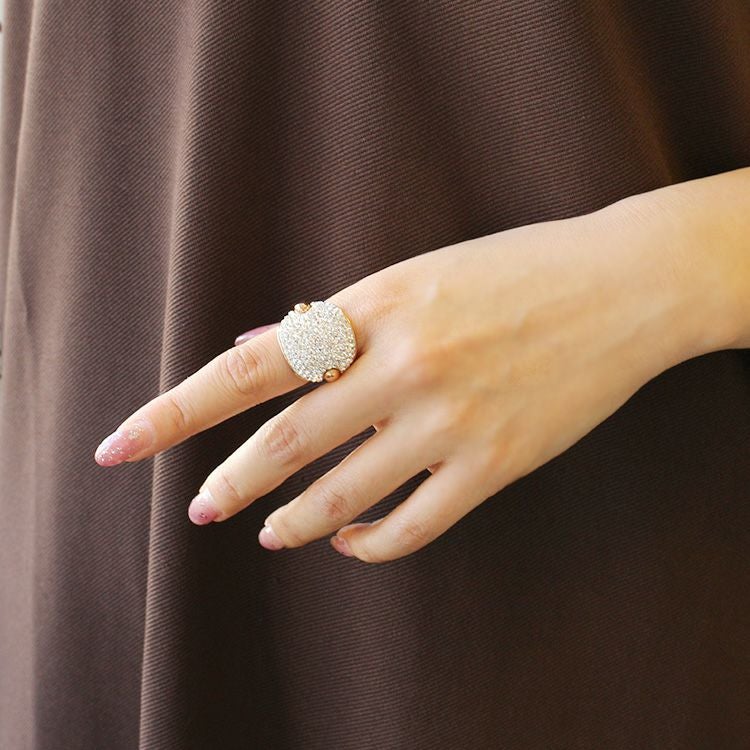 たっぷりとあしらわれたクリスタルガラスが星屑のように煌めくリング。