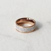 リングの表面の溝にチェコクリスタルガラスがパヴェ状にあしらわれたハーフエタニティリング。