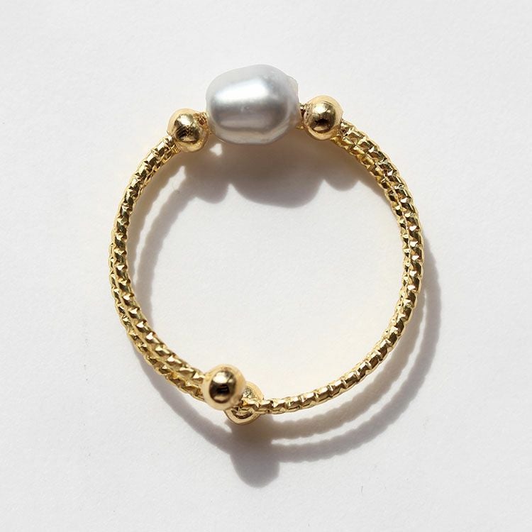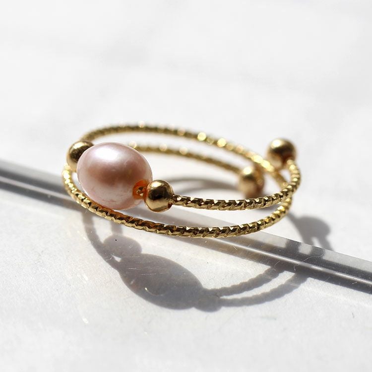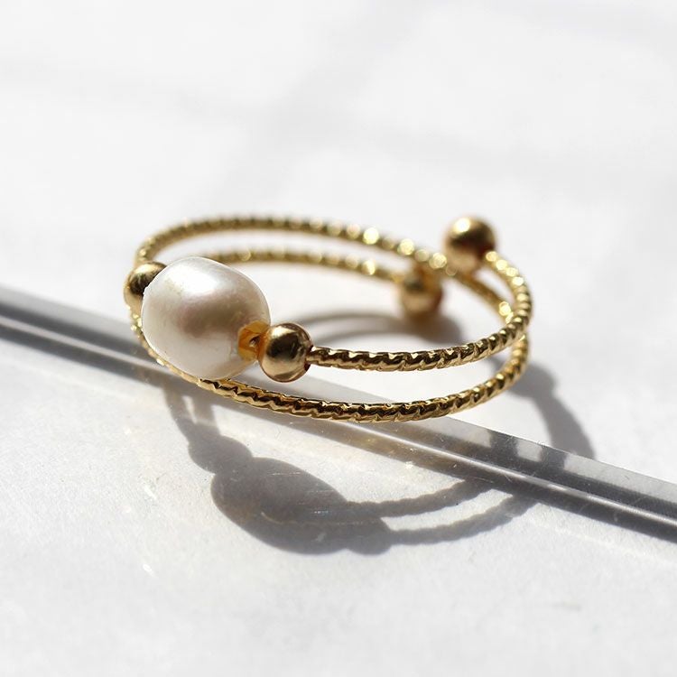 ダブルリングが洗練された印象の淡水パールダブルリング。楕円型の淡水パールがキュートでエレガントな雰囲気を演出しています。パーティーからデイリーまで幅広くご利用いただけます。