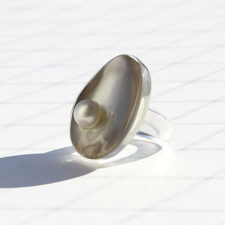上質な樹脂、ポリエステルレジンの特性を活かし、ガラスのような質感を再現しつつも、軽くてつけやすいことで人気を博しています。肌に触れる部分に金属を使用していないため、アレルギーの方でも安心してお使いいただけます。