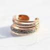 リングが5連配置されたデザインリング。パヴェ状にクリスタルガラスが敷き詰められ存在感あるフォルムは、パーティシーンやお出かけコーデを引き立ててくれます。