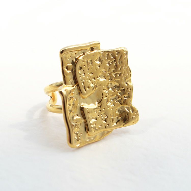 不規則な槌目加工を施したメタルを重ねたリング。