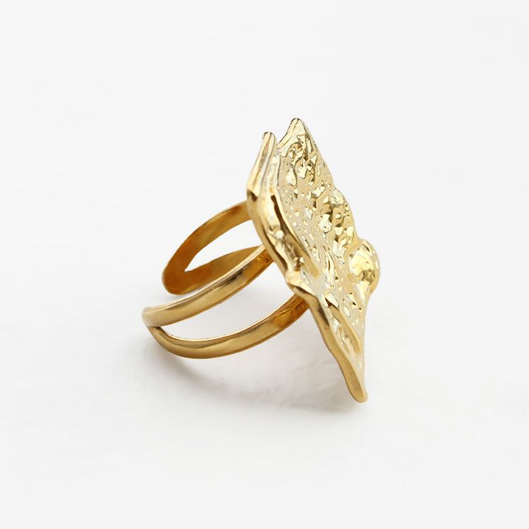 他につけるアクセサリーともコーディネートしやすいシンプルなゴールドの地金調デザインながら、1点つけるだけで華やぎがうまれる大ぶりサイズ。アーム部分が細いので普段大ぶりリングを着けない方やむくみやすい方にも違和感なく着けられます。