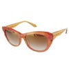 めがねの街、福井県鯖江でデザイン・制作したサングラス。女性らしいフォルムのフレームには微細なラメ感があり、さりげなくも華やか。注目すべきはテンプルの芯の形。透けて見える特徴的なデザインは横顔のアクセントになり、細部までこだわる大人のおしゃれを感じさせます。