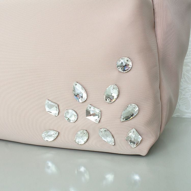 利便性の高いアイテムながら、品の良いカラーバリエーションとキラキラビジューで上質な華やぎをプラスし、カジュアルからオシャレ着でのお出かけまで、幅広いシーンにマッチします。