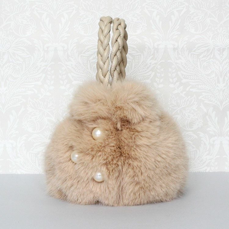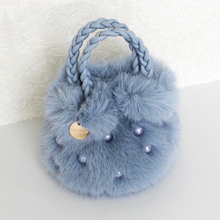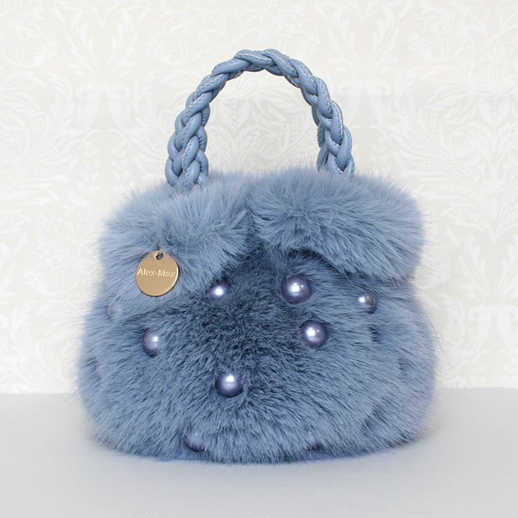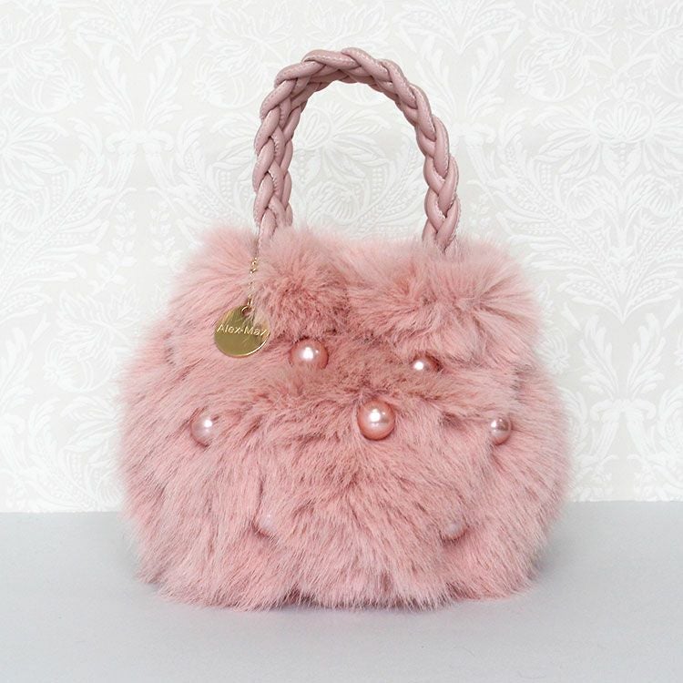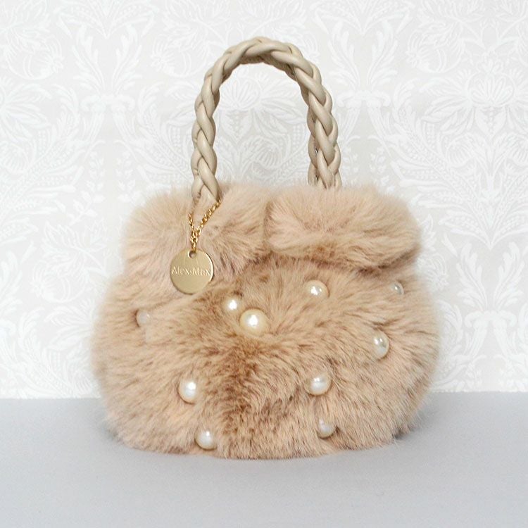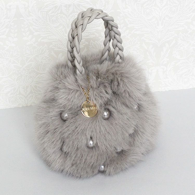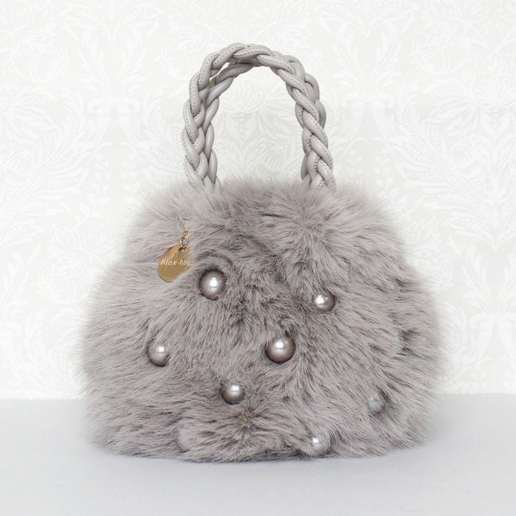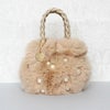 大きなパールとコロンとしたフォームがキュートな大人かわいいふわふわのエコファーバッグ。取り外し可能なショルダーストラップ付きなので肩掛けや斜め掛けでご利用いただけます。ハンドルはPUを編み込んだかわいいデザイン。開閉部分はマグネットになっているので、取り出しもスムーズ。内側にはファスナー付きのポケットが付いていて、鍵など大切な小物をしっかり収納可能。しっかりとマチがあり、お荷物を十分に収納できるゆったりサイズです。