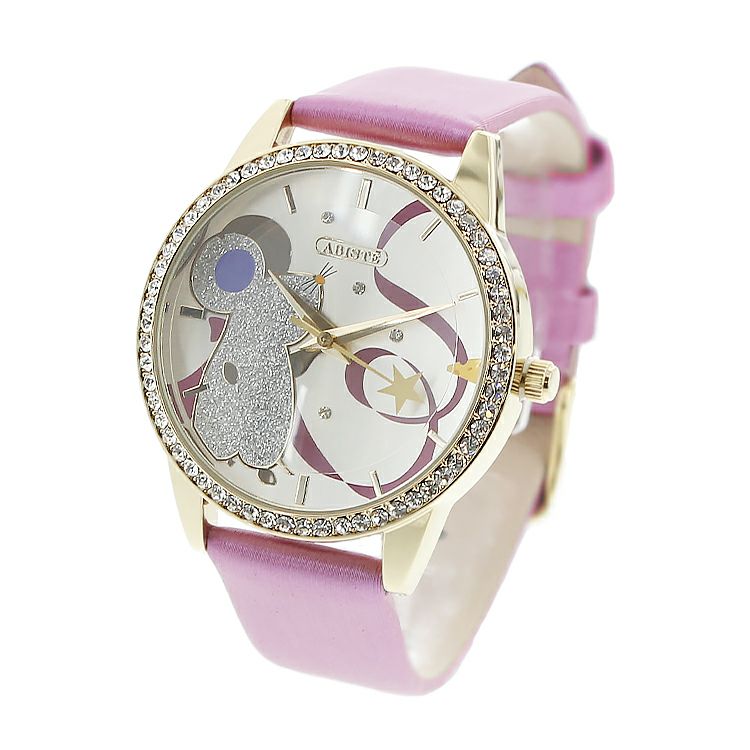 可愛らしいねずみが文字盤に描かれた干支限定デザイン腕時計。おやつの時間にはねずみの大好物なチーズを。ABISTEデザイナーの遊び心あふれるアイテムです♪周りにチェコストーンをあしらい、レディな雰囲気も演出。ベルトは本革でシンプルにまとめました。ABISTEの干支限定アイテムで運気良く始めませんか。