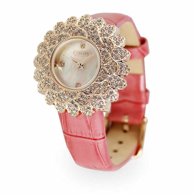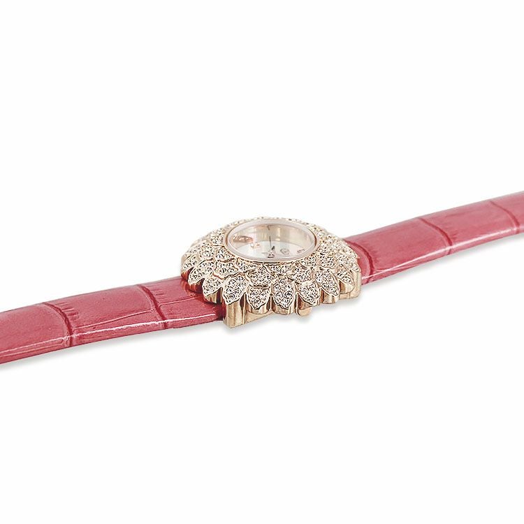 クリスタルガラスを贅沢にあしらった腕時計。牛革は使い込むにつれてどんどん腕に馴染んでフィットしていきます。