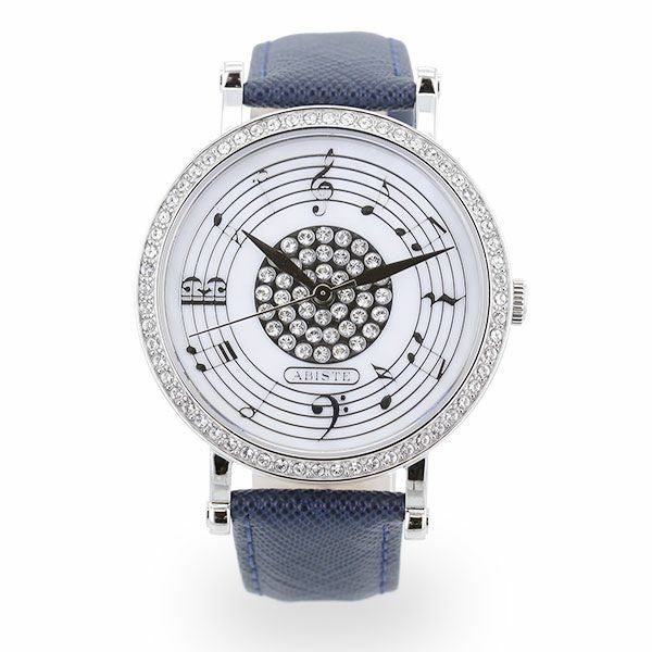 音符モチーフが気持ちを明るくさせる腕時計。フェイスにあしらわれたクリスタルガラスが、エレガントな腕元を演出します。