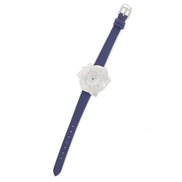ローズモチーフキュービックジルコニア細ベルト腕時計/9161001