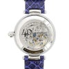 リューズにもクリスタルガラスをあしらい、ベルトはヘビ革をイメージした型押しで高級感のあるデザインに仕上げています。