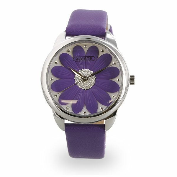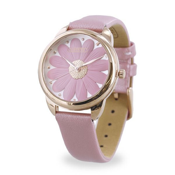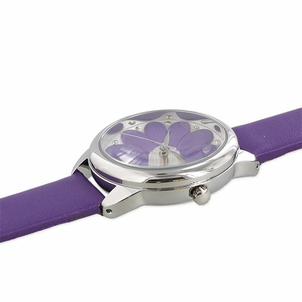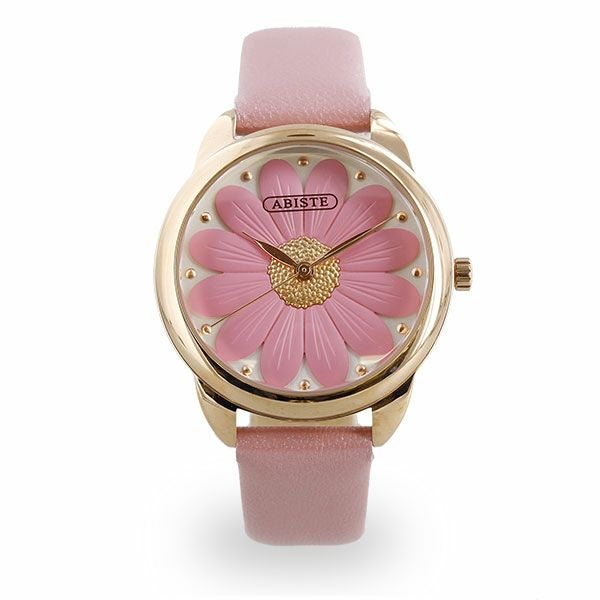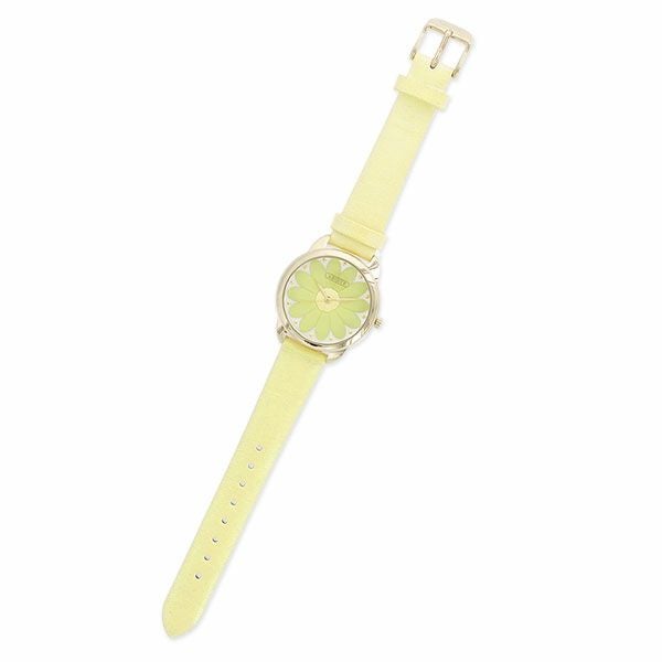 大きなフラワーモチーフが目を惹くラウンドフェイス時計。発色の良いビタミンカラーのベルトは、付けているだけで気分が高まります。 肌に当たる部分はステンレス素材を使用し、ベルトも内側は牛革を使用しています。