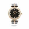 ブラックの文字盤にクリスタルガラスのインデックスがおしゃれで華やか。
