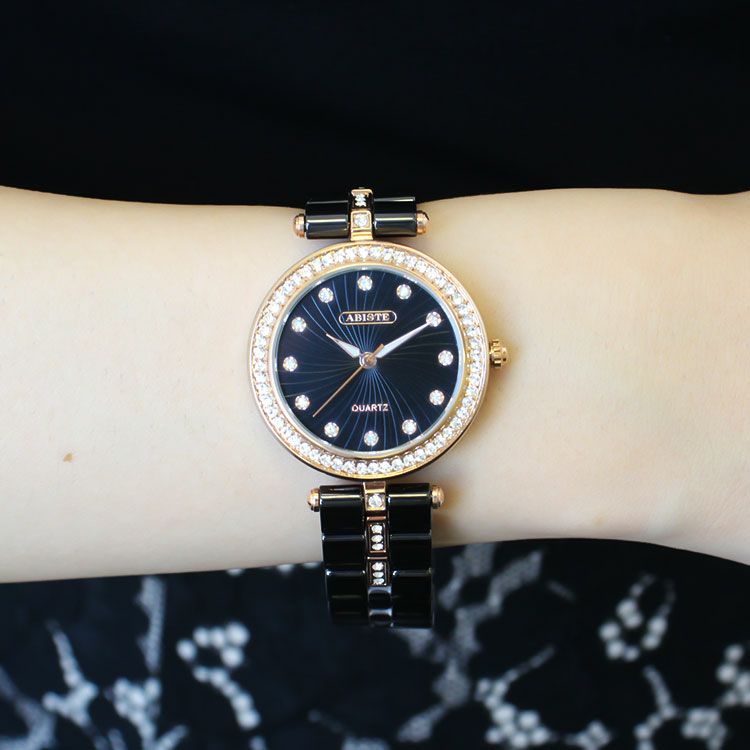 ラウンドフェイスクリスタルセラミックベルト時計/9190005-