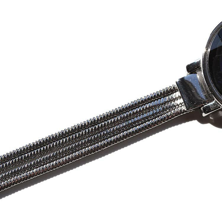 ブラックフェイスがスタイリッシュな印象のチェーンブレスレット腕時計。4連のチェーンがスッキリとしたデザインで大人の女性にピッタリです。