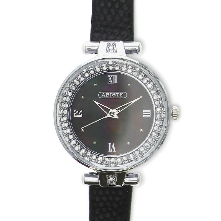 ラウンドフェイスクリスタル革ベルト腕時計/9220068S