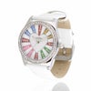 ベゼルをクリスタルガラスで囲んだキュートなハートモチーフベルト腕時計。文字盤もクリスタルガラスをあしらったキュートでラグジュアリーなデザインです。ホワイトとブルーはカラフルに、パープルとブラックはシックな雰囲気を演出。革ベルトがしっくり手に馴染んで使いやすい腕時計です。