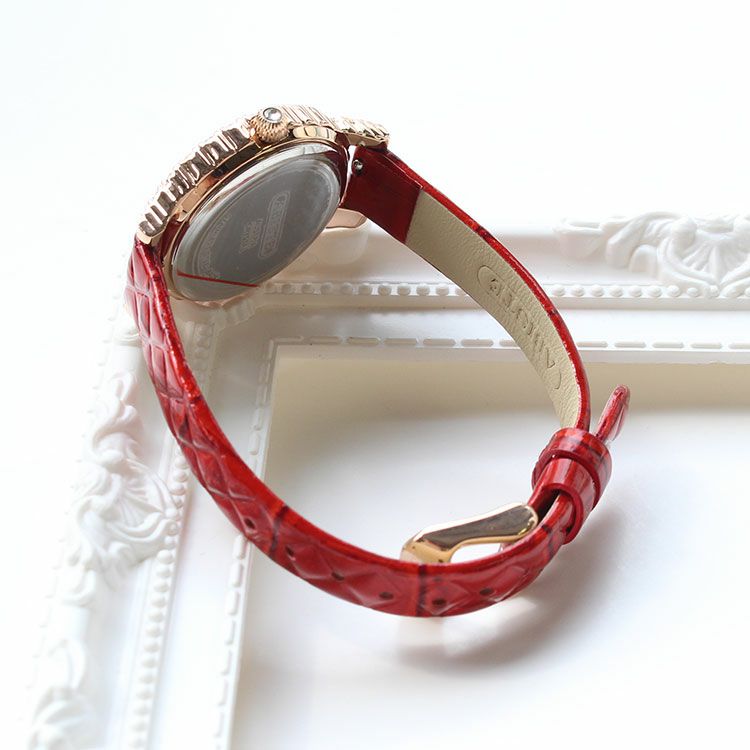 ラウンドフェイスクリスタル革ベルト腕時計/9210011