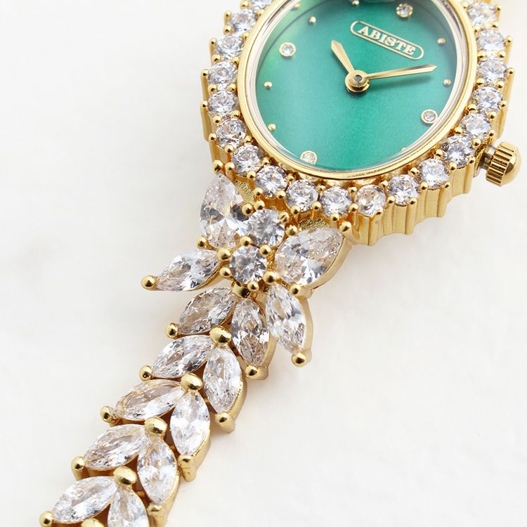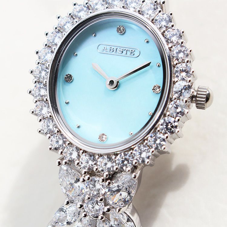 ベゼルやベルトには大粒のキュービックジルコニアをぎっしりと配し、ジュエリーさながらの華やかさは身につければ高揚感を感じさせてくれます。