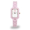 セラミック製の時計。金属製よりも軽く、ミルキーな色合いも可愛いので、ブレスレット感覚で着けられます。エレガントなデザインと可愛いカラーのバランスが◎。カジュアルスタイルに大人の女性らしさをプラスします。