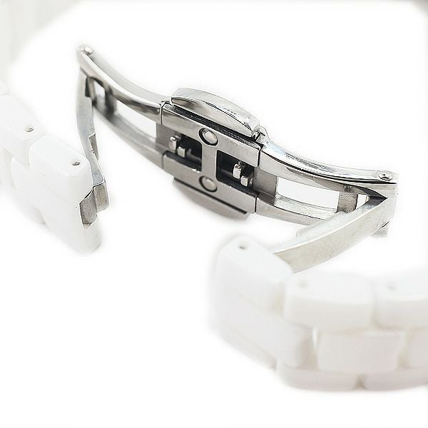 セラミック製の時計。金属製よりも軽く、ミルキーな色合いも可愛いので、ブレスレット感覚で着けられます。大人のカジュアルスタイルにオススメ。