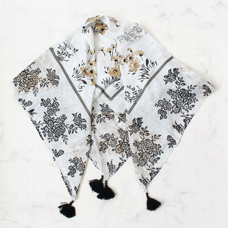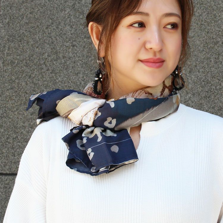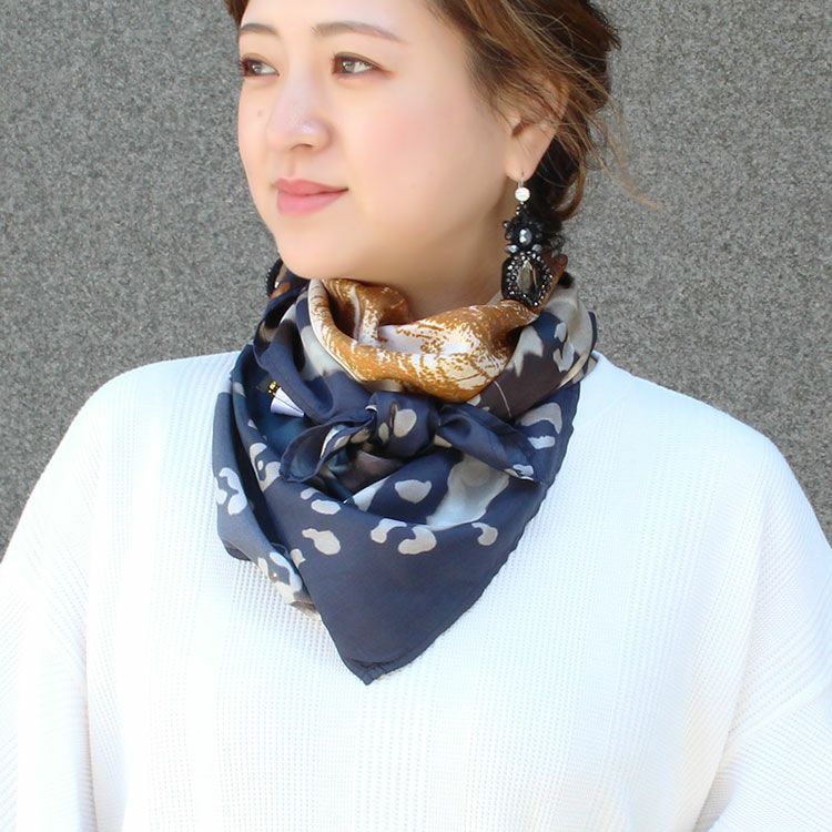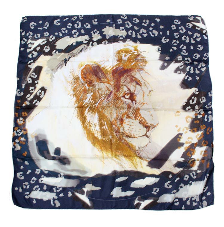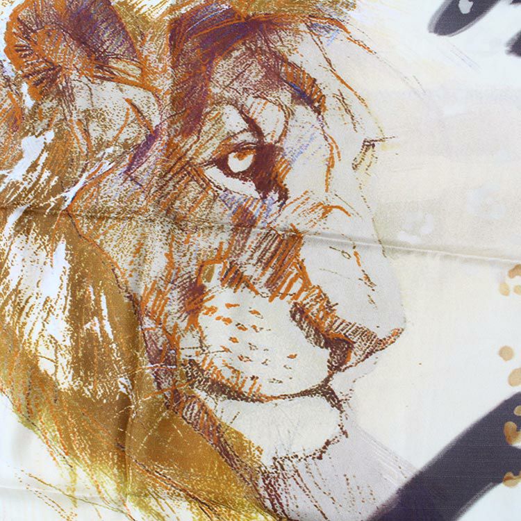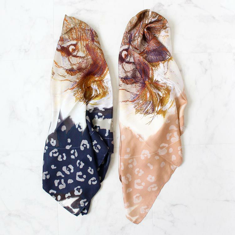 インド製シルク100%ライオンモチーフ大判スカーフ