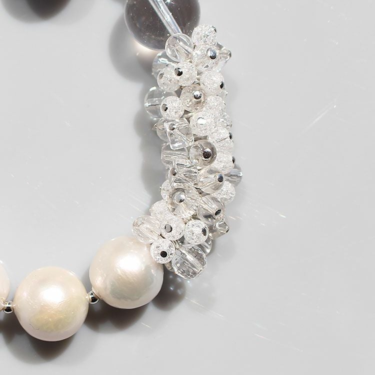日本製クォーツクローバー×フラワーモチーフショートネックレス