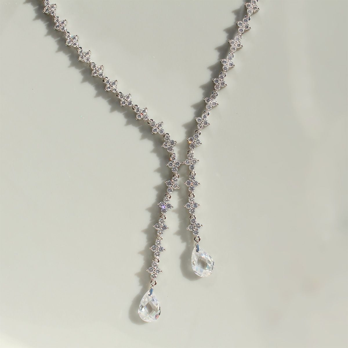 ラリエット調キュービックジルコニアネックレス・イヤリングセット