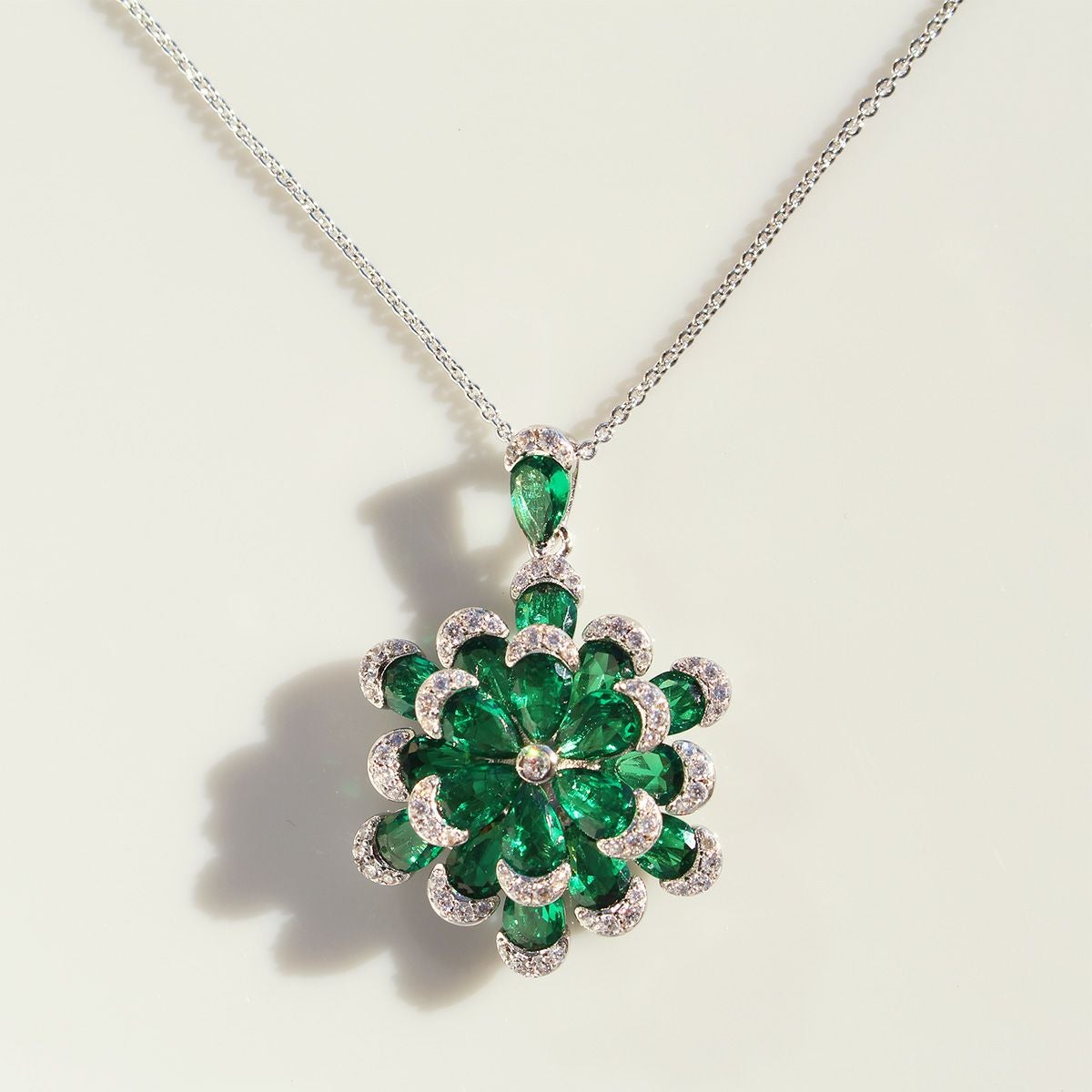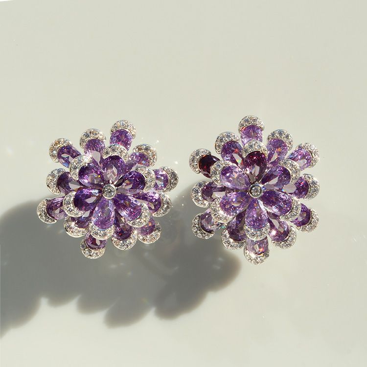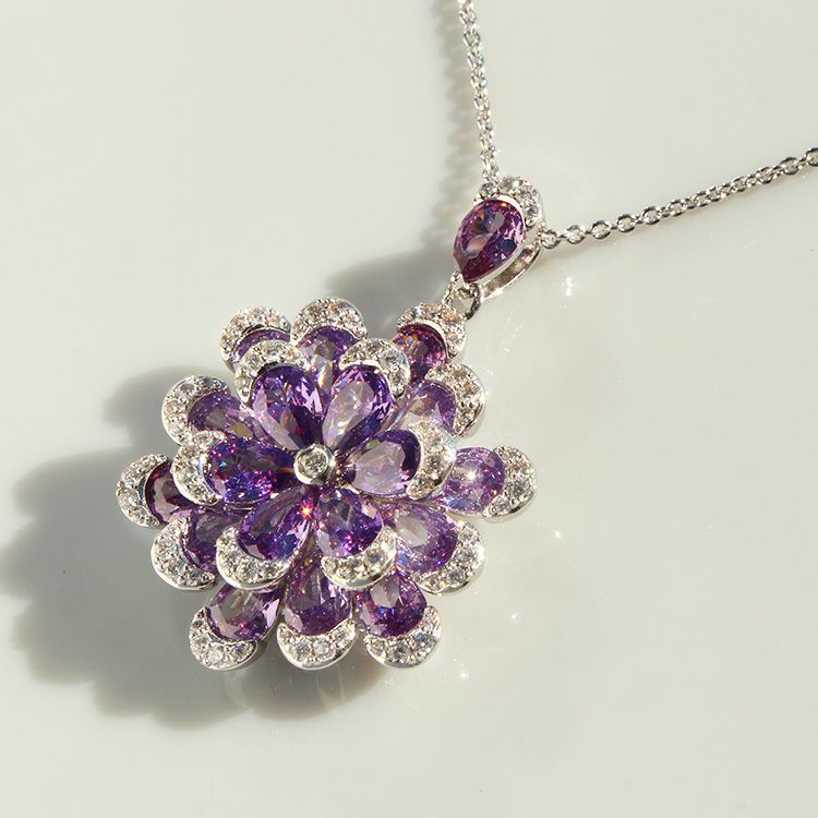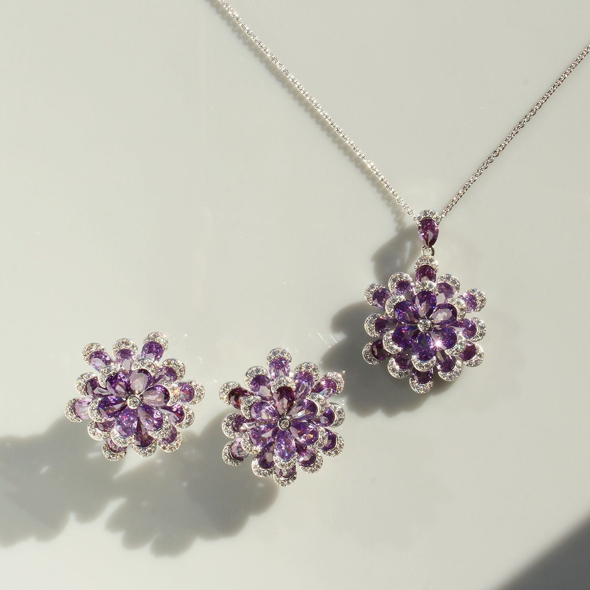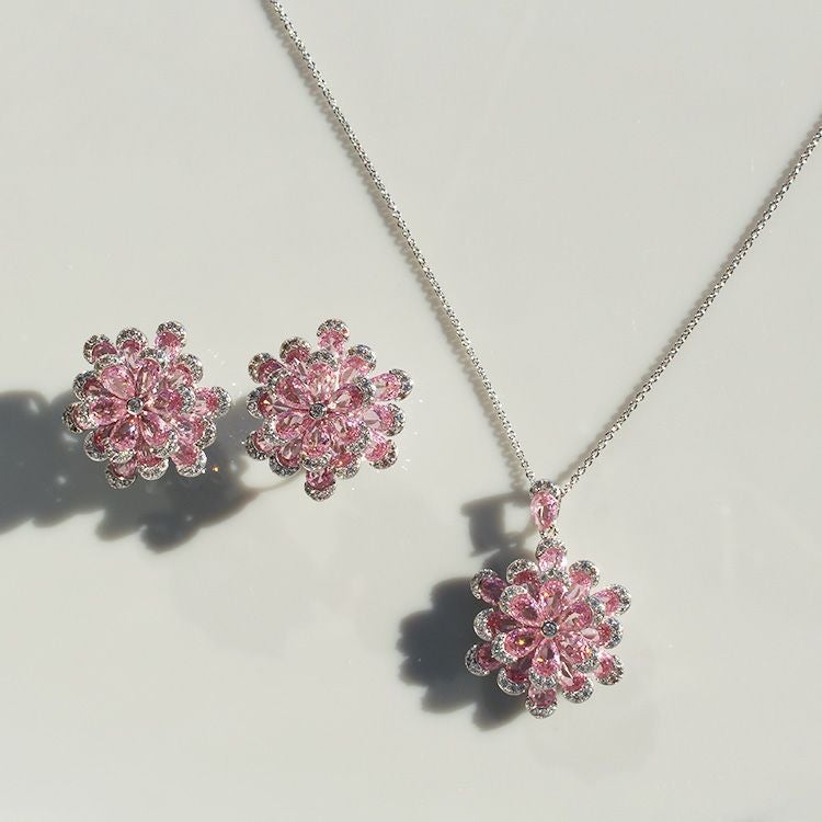 フラワーモチーフキュービックジルコニアネックレス・イヤリングセット