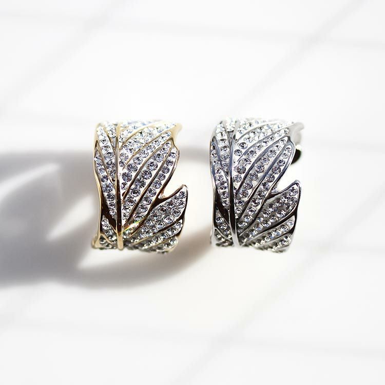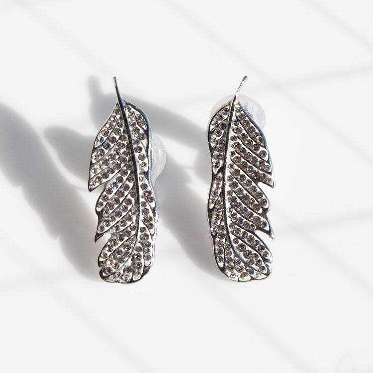 チェコクリスタルフェザーモチーフデザインイヤリング