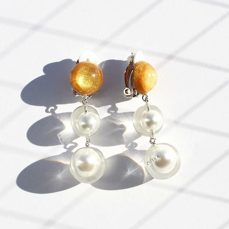 【ZSiSKA】≪FLOATING PEARLS≫レジンロングイヤリング