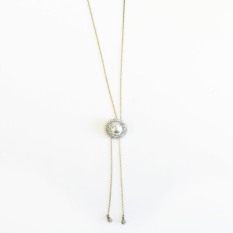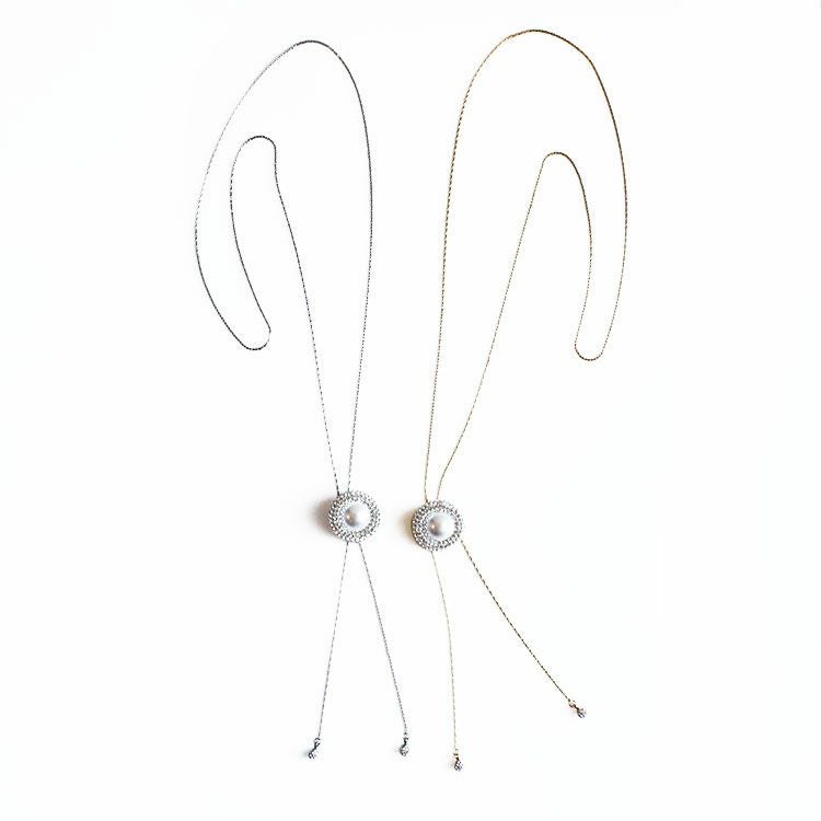 チェコクリスタル×パールY字スライドチェーンロングネックレス
