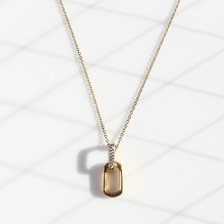 チェコクリスタルラウンドレクタングルショートネックレス【美ST 掲載】
