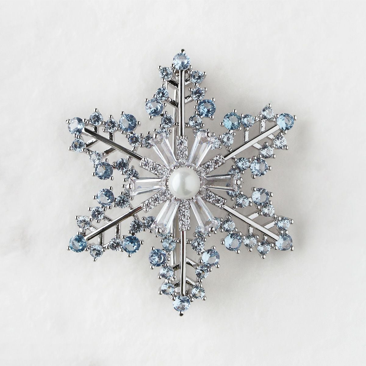 スノーフレークモチーフキュービックジルコニアブローチ