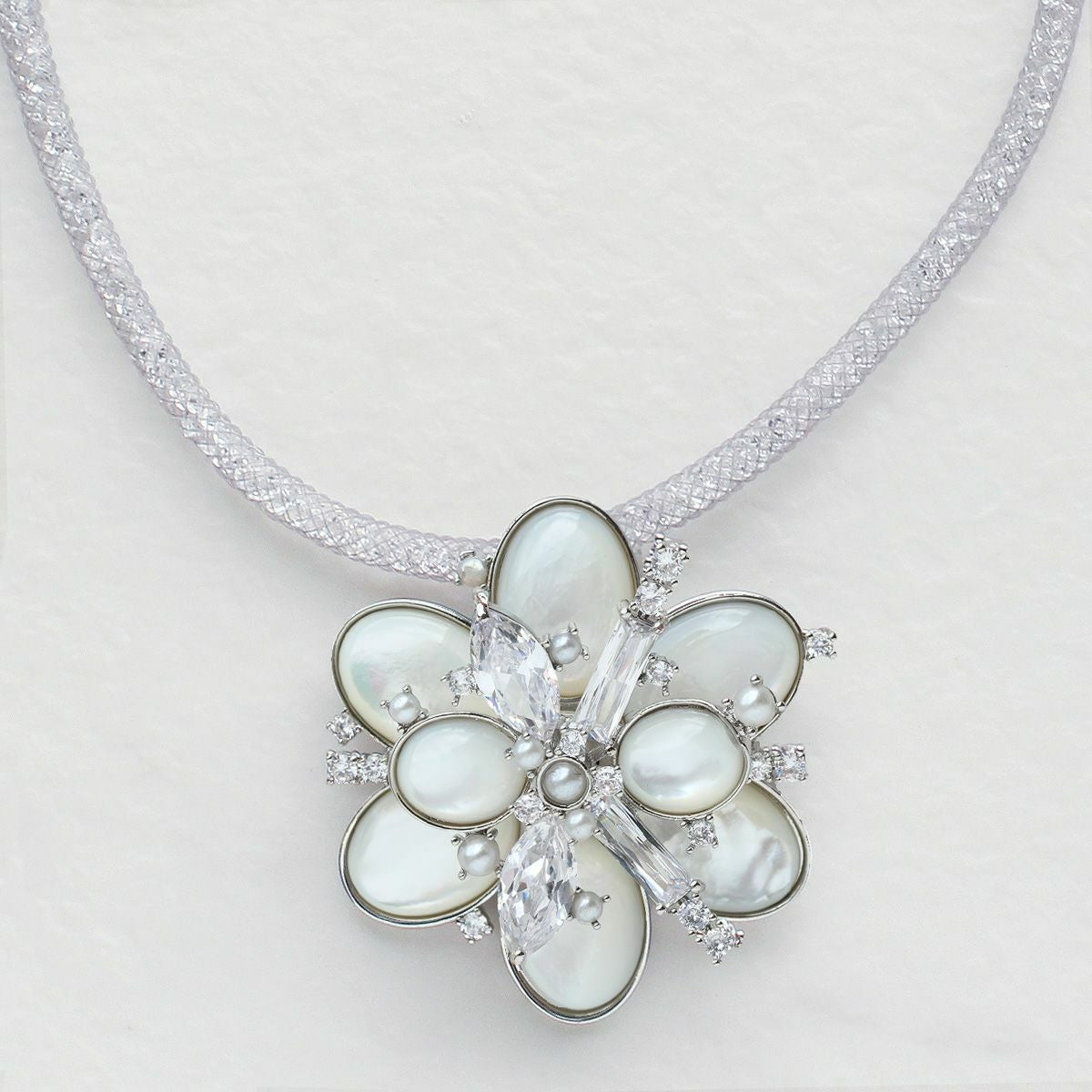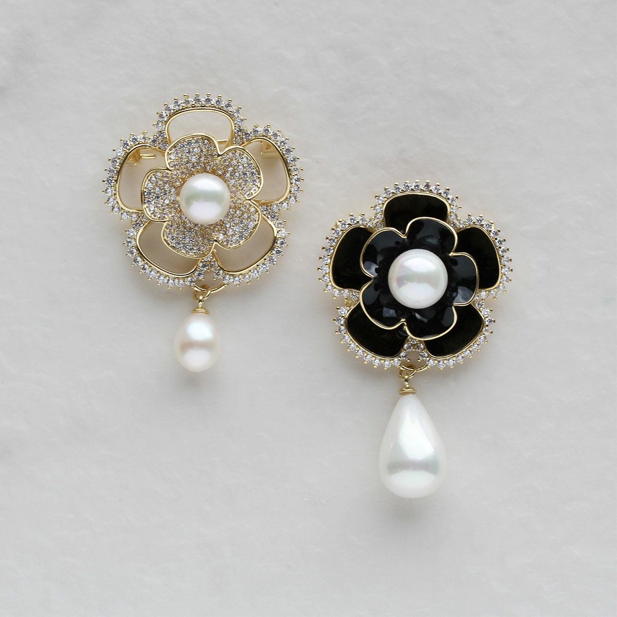 キュービックジルコニア×シェルパールフラワーブローチ