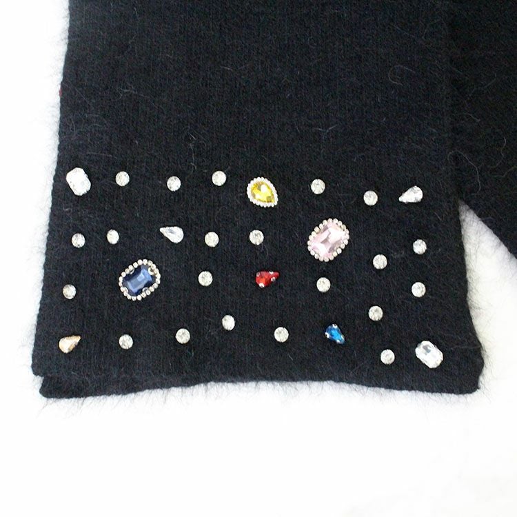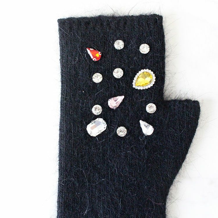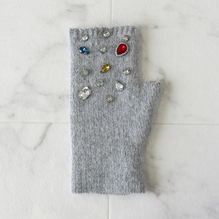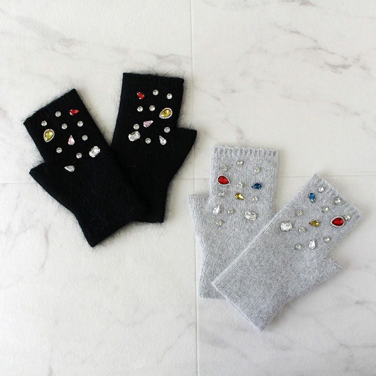 ビジュー付きフィンガーレスタイプニットグローブ